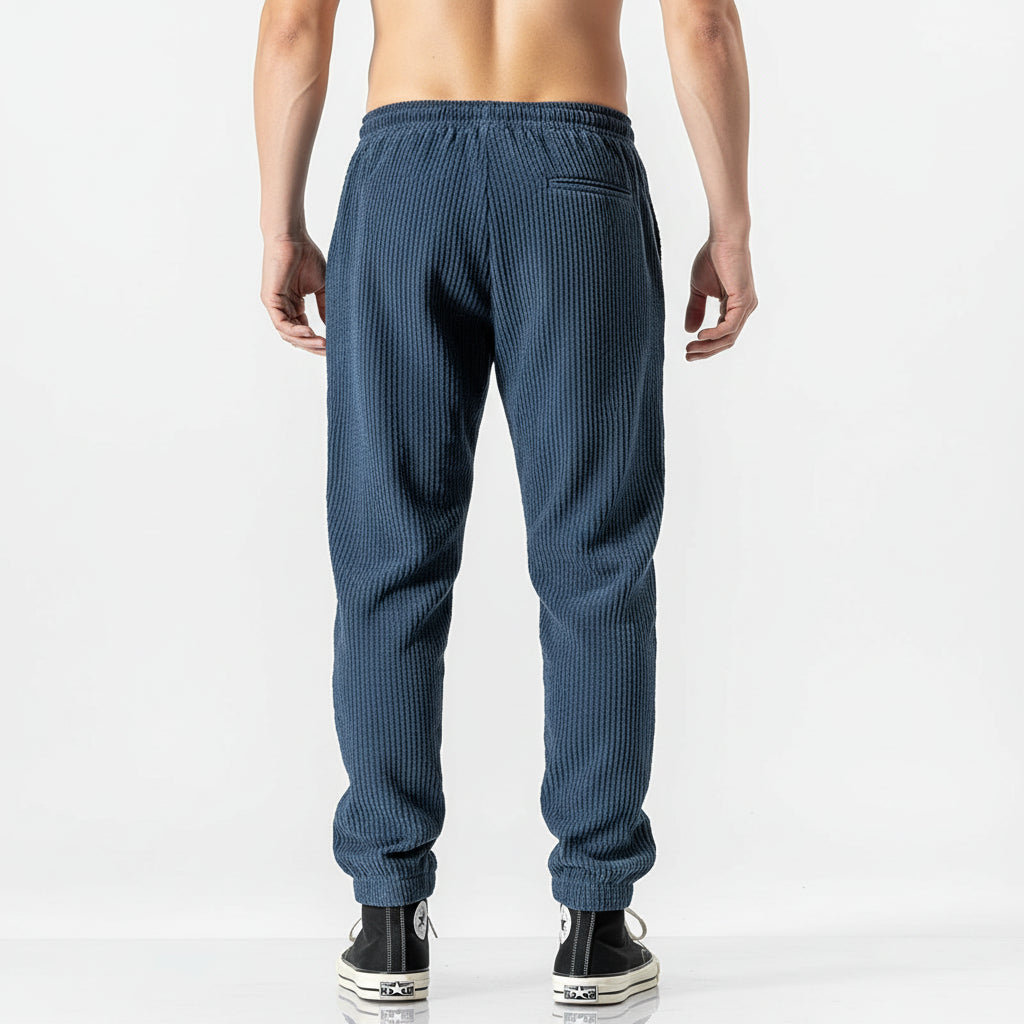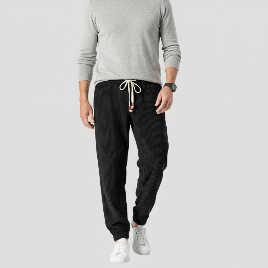 Die edle Textur verleiht dem Design Tiefe, während der komfortable Schnitt natürliche Bewegungsfreiheit ermöglicht. Mühelos, vielseitig und zeitlos – eine Hose, die ruhige Souveränität und stilvolle Beständigkeit ausstrahlt.